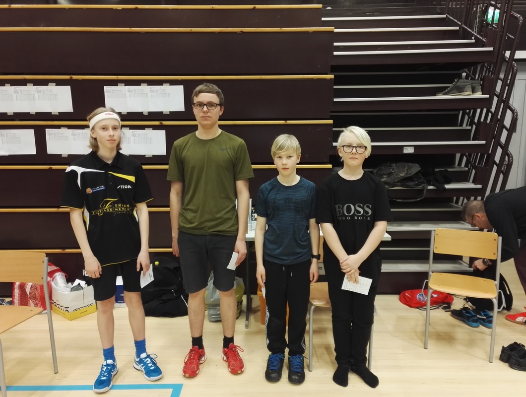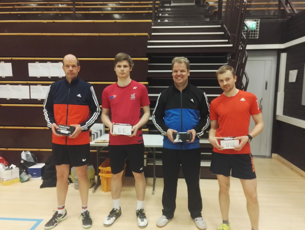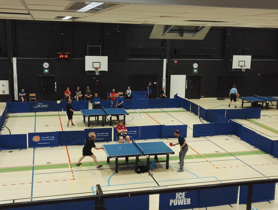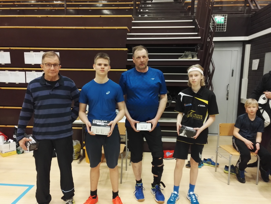 Kilpailun pääluokan, miesten kaksinpelin pokkasi nimiinsä jälleen kerran Iivari Hartikainen. Iivari nautti avaran salin tarjoamista mahdollisuuksista ja voitti loppuottelussa seuratoveri Jouni Nousiaisen erin 3-1 (-7, 14, 9, 6). Tuossa vaiheessa jo harva yleisö sai nähdä monia nostelu-tappo-ralleja ja spinnitaisteluita kaukaa irti pöydästä. M-2000 luokan pallotteli nimiinsä Haminan Luka Penttinen, joka on racketlonissa (squashin, sulkapallon, tenniksen ja pöytätenniksen neliottelussa) ikäluokkansa maailman kärkeä. Kovat tappolyönnit jäivät tällä kertaa piippuun loppuotteluvastustaja PT-2000:n Heikki Kettusella. Yksi Kettunen oli kuitenkin korkeimmalla palkintopallilla. PT-Helsingin Mika Kettunen voitti hikisen päiväpuhteen lopuksi M-1800 luokan. Loppuottelussa kotiseuran Kari Punnonen teki kaikkensa tuodakseen jälleen yhden ykkössijan Kuopiolle, mutta etelän mies oli viisieräisessä etevämpi. M-1600 luokassa "The Voice of KuPTS" Aki Miettinen näytti että herkkä tatsi on myös pingiksessä. Rystysivallukset alkoivat lopulta löytää pöytään ja viimeistään slipoverin riisuminen sammutti finaalipari MPS:n Juha Akkasen pyristelyn. Sivukehut myös semifinaaliin yltäneelle Juha Kuljulle joka ylsi jatkopeleihin poolistaan selkeästi heikommasta ratingista huolimatta. Ja kun Jussia nyt kehumaan päästiin, oli iso mies omiaan näpyttelemään luokkavoiton "omassa luokassaan" M-1400:ssa. Näin, vaikka alkupoolissa tuli tappio Iisalmen neitiä Selma Suikkasta vastaan ja semissä JPT:n nuoriherra Aku Kastinen roikkui myös täydet viisi erää pelissä. Loppuottelu Nu-Se:n Niilo Rätyä vastaan oli kuitenkin suorien erien triumffi. Vaan oli Niilollakin menestyksekäs päivä. Hopeasija tonninelisatasissa vaihtui kultaan M-1200:ssa. Pooli hoitui tappioitta (joskin Savonlinnan Antero Kuhmosen kanssa miteltiin melkoinen trilleri!) ja mitaliottelut selvinä kolmieräisinä. Hienoa nähdä Nurmeksesta jälleen uusi lupaava pingistelijä! M-1000 luokassa oli mukana ainoastaan seuramme omia juniori- ja pingiskouluryhmäläisiä. Ville Hyvärinen otti voiton. Villellä on ainoana heistä jo kisarutiinia, joka toistaiseksi myös näkyy. Siilinjärvellä asuvat Konsta ja Jaakko ovat kuitenkin oikein lupaavia ja toivottavasti harjoitusinto vaan kasvaa kisakasteen myötä entisestään! Yleisesti osallistujamäärä oli hivenen pettymys. Seurassamme tullaan miettimään varmasti, miten kilpailutapahtumaa, ajankohtaa jne. voisi parantaa ja tehdä houkuttelevammaksi. Kaikki tullaan kuitenkin tekemään talous edellä ja on todennäköistä että ensi kaudella Kuopiossa kisataan tutusti Luolassa. Kilpailutulokset: Kuopion Kevätkisat
