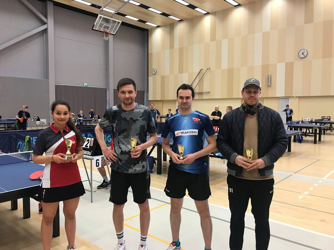 Jimi Miettinen pelasi suoriutui menestyksekkäästi viikonvaihteessa pelatussa Tervamalja-GP:ssä Oulussa. Jimi eteni Luokka 1:ssä aina loppuotteluun saakka. Lisäksi sunnuntain miesten kaksinpeliluokassa heltisi pronssia. Luokka 1:ssä Miettinen aloitti alkupoolinsa kolmella suoralla voitolla. Ainoastaan yksi erätappio (Vesamatti Riihimäelle) oli rasitteena. Jatkokaaviossa kaatui ensin Halexin Christian Porthin erin 3-1. Kolme erää oli tiukkaa, mutta lopulta neljännessä voitto 11-5. Semifinaalissa vastassa olleesta Nurmeksen Santeri Korhosesta ei myöskään ollut Jimille vastusta: 3-0 (7, 3, 8). Aivan luokkavoittoon asti ei peli kantanut, sillä Ruotsin puolelta Haaparannasta löytyi parempi. HSKT:n Mohammed Khiralla Saad nappasi luokkavoiton tiukan viisieräisen väännön lopuksi (-9, 11, 2, -3, -9). Myös sunnuntaisessa miesten avoimessa kaksinpeliluokassa tuli tuliaisiksi hieno pokaali. Jimi otti alkupoolissa yllättäen ykköstilan jälleen kolmen voiton myötä. Samalla myös upea ratingvoitto ykkössijoitetusta JysRy:n Tomi Lehtosesta 3-1 erin! Jatkocupissa mitalisija varmistui toisella hyvällä ratingvoitolla kun Jimi kampesi jälleen 3-1 erin MBF:n Lauri Hakasteen lauluun. Semissä seurasi kuitenkin tappio kun luokan lopulta voittanut romanialaisjyväskyläläinen lahjakkuus Maria Girlea onnistui naputtelemaan Miettisen nurin. Kisoihin osallistui myös seurastamme Juha Kulju, eikä Jussi ollenkaan huonommin pelannutkaan. Rating 1700-luokassa tuli alkupoolissa oikein upea skalppi kun OPT-86:n Kari Pikkarainen kaatui 3-0. Pikkaraisella on Juhaa yli 250 pistettä parempi rating, joten voidaan puhua ISOsta voitosta! Jatkossa kuitenkin YNM:n Oskari Honkavaara ei antanut yllätykselle saumaa vaan katkaisi Jussin pelit tylysti 0-3 voitolla. Oulussa osoitettiin jälleen, että kaupunki ja OPT-86 ovat yksi johtavista pöytätenniskeskittymistä Suomessa. Upea, 23 pelipöytää vetänyt sali täynnä pelaajia; tähän tulee jatkossa pyrkiä myös Kuopiossa. Toki täkäläiset salit eivät ihan tällaiseen pöytämäärään taivu. Kilpailutulokset: Tervamalja-GP