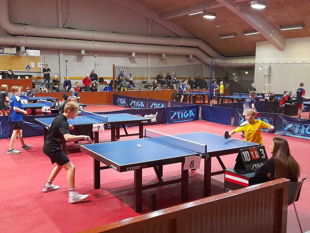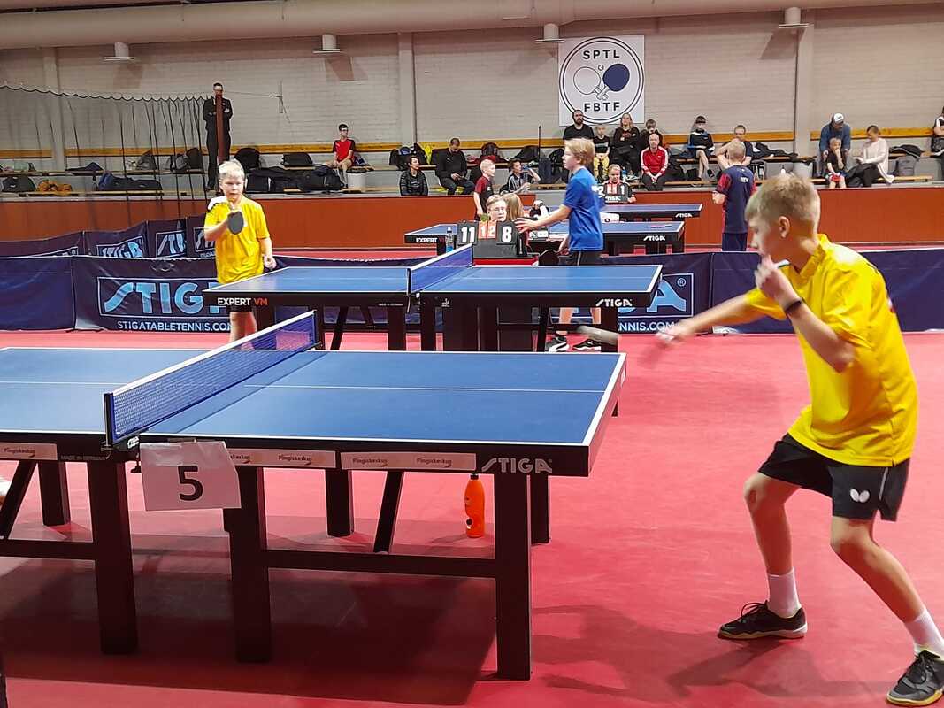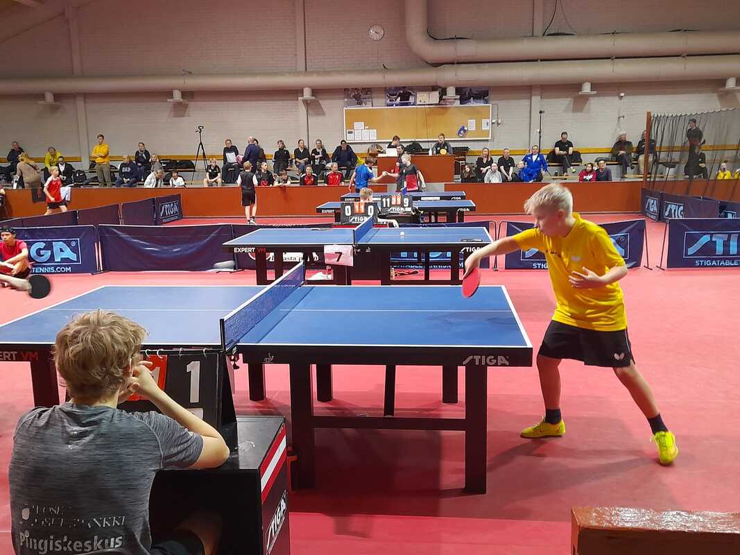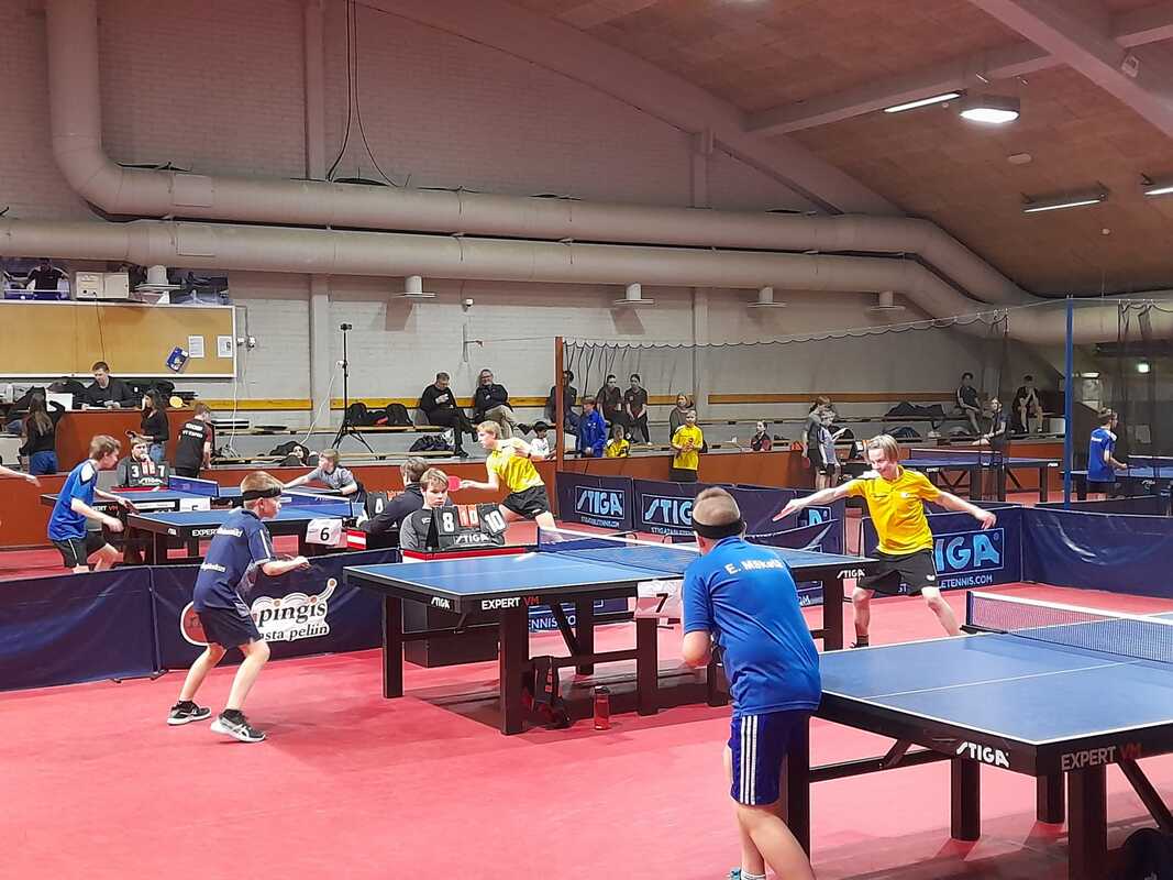 Kuopion Pöytätennisseura osallistui peräti kahden joukkueen eli kuuden pelaajan voimin viikonloppuna Helsingissä pelattuihin juniorien SM-kilpailuihin. Vaikka mitalit vielä matkasivat toisaalle, osoittivat junnumme että tulevaisuudessa Kuopiostakin voi menestyjiä jälleen tulla. Seurastamme kisoissa pelasivat Samu Niskanen, Noel Kokkonen, Konsta Leppänen, Toivo Halmepuro, Elmeri Räsänen sekä Niko Hämäläinen. 13-vuotiaiden kaksinpelissä kaikki pojat saavuttivat alkupooleissaan voittoja ja monesti myös paremman ratingin vastustajista. Pooleista jatkoon pääsivät Samu (lohkoykkösenä puhtaalla pelillä!), Noel (lohkoykkösenä puhtaalla pelillä!), Konsta (lohkoykkösenä puhtaalla pelillä!) sekä lohkokakkosina Toivo ja Niko. Elmeri jäi poolinsa kolmoseksi, mutta yksi kaksinpelivoitto taskuun. Jatkokaaviossa Samu putosi ehkäpä vähän yllättäenkin Oulun Aapo Åvistille. Muut pojat joutuivat pelaamaan keskinäisiä: Niko voitti Konstan 3-1 ja Toivo Noelin 3-0. Kvartassa Niko oli aseeton Oulun Luka Oinasta vastaan mutta Toivo taisteli kiivaasti pääsystä mitalipeleihin. MBF:n Sisu Sammalkorpi vei lopulta tiukan taiston 3-2 erin. 15-vuotiaiden kaksinpelissä oli mukana jo vanhempia ja rutinoituneempia pelaajia, joten tasokin oli luonnollisesti kovempi. Samu pelasi kuitenkin kahden otteluvoiton myötä itsensä jatkopaperille. Myös Noelille ja Toivolle yhdet mallikkaat voitot alkupoolissa. Samulle jatkokaaviossa vastustajaksi asettui 13-vuotiaiden kaksinpelimestari TIP-70:n Jimi Koivumäki joka oli kovempi 3-0 erin. Pojat treenailivat viime viikolla luolalla myös nelinpeliä näitä kisoja kenties silmällä pitäen. Samu ja Toivo voittivatkin ensimmäisen ottelunsa mutta toisessa matsissa Jyväskylän Mihai Girlea ja Patrik Södergård olivat 3-0 parempia. Noel ja Konsta pelasivat myös hurjan tiukan matsin helsinkiläis-porilaista paria vastaan, mutta 9-11 viidennessä erässä jäi pojille lopulta tulokseksi. Kolmas parimme Niko ja Elmeri eivät voineet jyväskyläläisille vastustajilleen asettaa spinnejä rattaisiin vaan putosivat 3-0 jatkosta. Joukkuekisassa pojat osallistuivat sekä 13- että 15-vuotiaiden joukkuekilpailuun. 15-vuotiaiden kisassa ei pojillamme oikein ollut palaa. Sekä ykkös- että kakkosjoukkue jäi ilman kokonaisvoittoa eikä yksittäisiä otteluvoittoja herunut. 13-vuotiaissa menestys oli odotetustikin parempaa. Ykkösjoukkueemme (Samu, Noel, Konsta) hoitelivat 3-0 PT Jyväskylä 2:n ja TIP-70 2 kaatui 3-1. Kakkosjoukkueemme (Toivo, Niko, Elmeri) selvisi myös jatkokaavioon yhdellä joukkuevoitolla ja -tappiolla. Ensin OPT-86 oli parempi 3-1 (Toivolle kavennusvoitto) mutta pojat ottivat hienon 3-0 voiton PT Espoosta. Jatkokaaviossa kakkosjoukkueellamme ei ollut mahdollisuuksia TIP-70 ykköstä vastaan, mutta ykkösemme pelasi taisteli todella mitaleille pääsystä PT Jyväskylää vastaan. Samu ja Konsta pystyivät molemmat voittamaan Aapo Lehtisen, mutta etenkin Lenni Kemppainen osoittautui toistaiseksi liian kovaksi peluriksi voittaen sekä Samun että Konstan. Näin ollen jäätiin vielä niukasti ulos mitaleilta, mutta suunta on oikea ja kova ja laadukas treeni tulee näkymään tuloksissa ennen pitkää myös ihan SM-kisasaralla. |