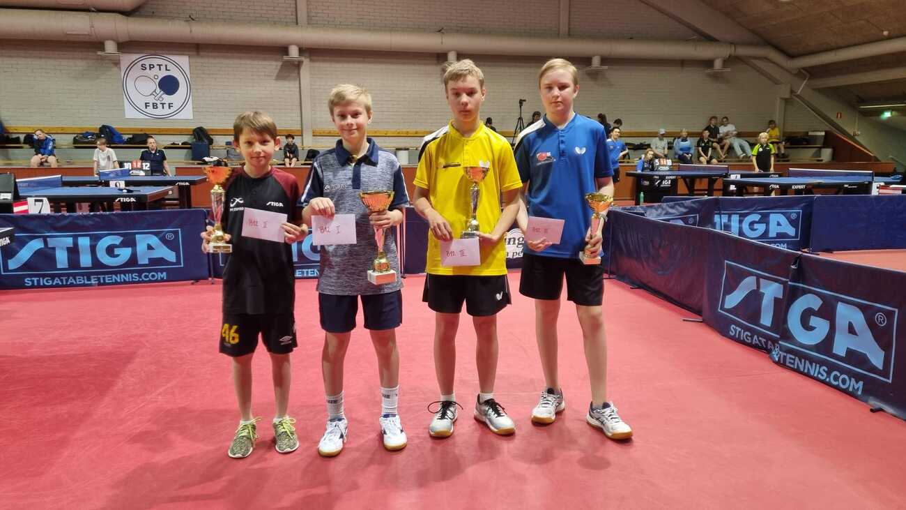 Kuopion Pöytätennisseuran juniorinelikko Konsta Leppänen, Elmeri Räsänen, Niko Hämäläinen ja Toivo Halmepuro osallistuivat viikonvaihteessa Helsingissä pelattuun Finlandia Junior Openiin. Vaikka iso osa osallistujista oli kotimaisia, oli taso hyvä ja pojille tuli jälleen kovia vääntöjä ja arvokasta tietoa siitä missä mennään tällä hetkellä kansallisessa kärjessä. J-12 luokka Toivoa lukuun ottamatta muut pojat saivat osallistua vielä J12 (B2010)-sarjaan. Konsta ja Niko selvittivät hienosti tiensä alkupoolista pääkaavioon. Elmerikin otti viiden pelaajan poolissa kaksi voittoa, mutta jäi kolmanneksi. Jatkopoolissa sunnuntaina Niko räväytti ja paineli semiin voitolla TIP-70:n Joel Koivumäestä. Semissä toinen tippiläinen, luokan lopulta voittanut etunimikaima Niko Lehtosaari oli vahvempi kolmesta tosi tiukasta erästä huolimatta. Konstakin pelasi oikein mallikkaan kvarttaottelun PT Espoon Roman Tamilinia vastaan, mutta putosi lopulta 1-3 erin mitalipeleistä. J-14 luokka Toisena luokkana (Toivolla "yli-ikäisenä" ainoana) pojilla oli J14-luokka. Taso luonnollisesti pari vuotta vanhempien sarjassa oli muutamaa piirua kovempi. Tällä kertaa kohtalo oli junnuillemme karu, sillä kukaan pojista ei yltänyt alkulohkosta jatkoon. Toivo otti poolissa yhden voiton (Viron Viimsin Gert Eineristä), Niko saman seuran Reio Rähnistä ja Konstakin pääsi lyömään KuPTS - Viimsi lukemiksi 3-0 voittamalla Martin Samsin. Poikien iloksi pelejä tuli myös "lohdutus-luokassa." Tässä J-12 luokan osalta kävikin oikein mukavasti, sillä niin Konsta kuin Elmerikin pelasivat itsensä luokan loppuotteluun! Finaalissa keskinäisen voitto Konstalle 3-0, mutta oikein hyvä saavutus kummaltakin. Myös J-14 luokassa pelattiin samanlainen luokka. Tässä kolme poolia, ainoastaan voittaja selvisi lopulliseen palkintopooliin. Toivo, Konsta ja Niko ylsivät kukin yhteen voittoon poolissa eivätkä selvinneet jatkoon, mutta Elmeri voitti poolinsa (Nikon kanssa huima vääntö poolin kuninkuudesta!) Loppupoolissa hyvät pelit Oulun Aapo Åvistia ja POR-83:n Arto Ojasta vastaan, mutta ihan ei paukut voittoihin riittäneet. Joka tapauksessa mainio kolmossija Elmerille! Lopuksi vielä tutusti kiitos taustaryhmälle! Juhat tarjoavat hyvin jeesiä niin kuskauksista kuvailuihin. |