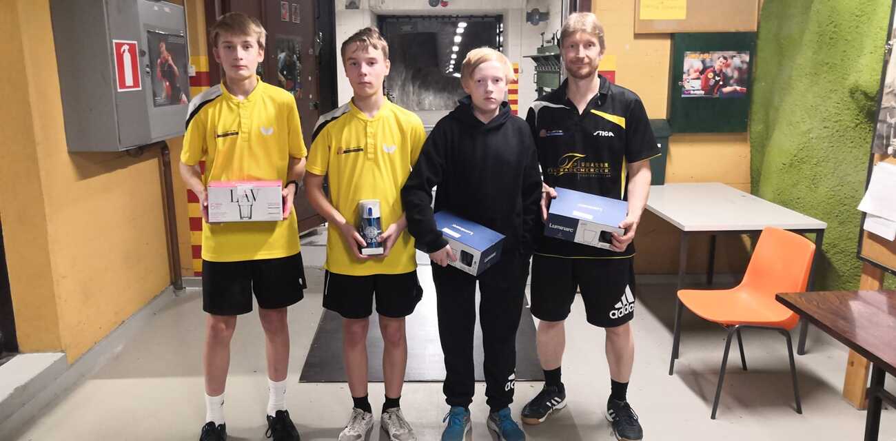 ![Juniorit-luokan palkitut: Leevi Kauppinen (4) KuPTS, Aatu Korkiavuori (3) PT Jyväskylä, Samu Karjalainen (2) KuPTS, Akseli Julkunen (1) KuPTS]()