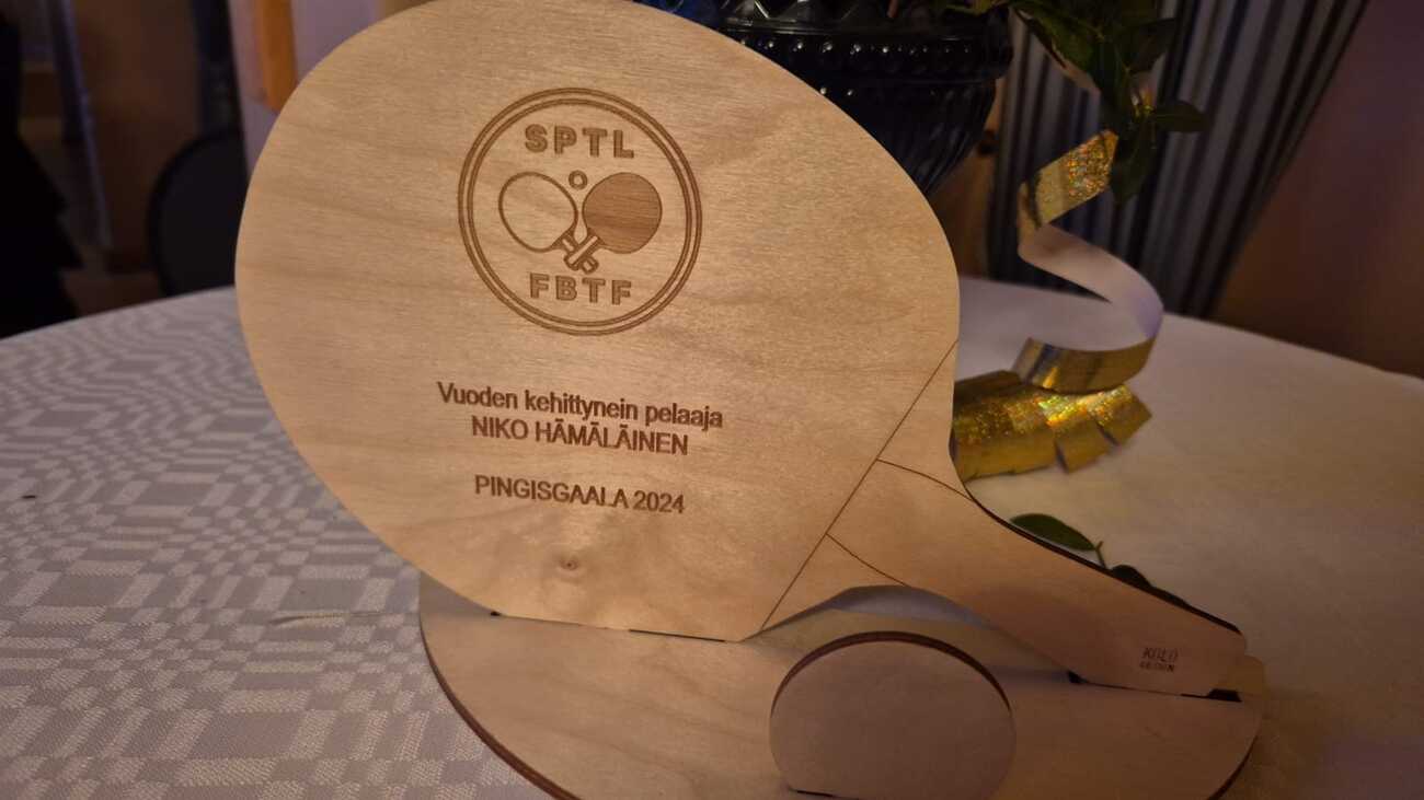 Niko Hämäläinen sai upean huomionosoituksen kun hänet nimettiin vuoden kehittyneimmäksi pelaajaksi 2024 osalta. Helsingissä kotimaan lajiharrastajat ovat kerääntyneet isolla joukolla juhlimaan ja pelaamaan Suomen pöytätennisliiton Pingisgaalaan. "Vuoden kehittynein pelaaja NIKO HÄMÄLÄINEN (Kuopion Pöytätennisseura): Harva olisi vuoden alussa arvannut, että Niko nappaa 13-vuotiaiden kaksinpelin Suomen mestaruuden. Kehitys on jatkunut vahvasti koko vuoden. Niko on voittanut ja haastanut jopa maamme TOP20-pelaajia." Seuraamme edusti Pingis-gaalassa ahkera juniorikolmikkomme: Nikon lisäksi Elmeri Räsänen ja Konsta Leppänen olivat aistimassa suuren pingisjuhlan tuntua. Kolmikkomme toki pelasi oikeitakin kilpailuluokkia, mutta parhaassa vireessä oltiin epävirallisissa luokissa. Niko voitti 50 euron pingislahjakortin tarkkuussyöttökisassa, Elmeri kakkossijallaan "Gun-Gamessa" jossa pelataan kaikilla muilla paitsi normaaleilla pingismailoilla ja Konsta nappasi peräti 100 euron arvoisen pingislahjakortin pingisbingon voitosta! - Konsta osallistui 1800-luokkaan. Kolmen pelaajan kesken voitot menivät tasan ja valitettavasti Konstan kohtaloksi jäi karsiutua alkupoolin myötä huonommalla eräerolla kolmikosta, josta jatkoon Vitalii Povolitskii (TuPy) ja Hannu Tolvanen (Stara). - Elmeri selvisi jatkokaavioon alkupoolista 2000-luokassa voitoilla Kai Tuovisesta (Wega) ja Jussi Joensuu (HUT). Konsta osallistui myös tähän luokkaan, mutta tällä kertaa tuli kolmessa alkupoolin ottelussa kolme kertaa käkättimeen. Pitkälle ei kantanut Elmerinkään tie kun stoppi tuli ensimmäisessä jatkomatsissa HUT:n Mikko Ollia vastaan niukasti 3-2 erin. - Elmeri osallistui myös 2300-luokkaan. Siinäkään ei jatkopaikkaa alkupoolista herunut, mutta upea voitto OPT-86:n Eetu Mäkelästä on pakko mainita. - Nikon ainoa aikuispuolen luokka oli miesten kaksinpeli, jossa alkupoolissa tuloksena oli viimeinen sija. Kolme 0-3 tappiota, joskin esim. Akeem Adewolea vastaan kahden pisteen erolla kaikki erät Adewolelle. Junioreiden TOP-luokassa Niko sijoittui parhaana kuptsilaisena kuudenneksi. Elmerin sijoitus oli 15. ja Konstan 25. Voidaan todeta, että aika lähelle pojat sijoittuivat ennakkoon arvioitua, sillä Niko oli rankattu sijalle 7, Elmeri sijalle 13 ja Konsta sijalle 24. Niko ja Elmeri pääsivät osallistumaan TOP-1 tasolle. Niko pelasi alkupoolissaan B toiseksi. Jälleen oli kolme pelaajaa kahdessa voitossa: Eetu Mäkelä hävisi 1-3 Heiton Otso Vahtolalle, Niko voitti 3-2 Otson, mutta hävisi Eetulle 2-3. Näin ollen Otso ykkösenä ja Niko kakkosena jatkoon. Elmeri pelasi alkupoolissa D. Tiukin vääntö tuli lohkon ykkössiidattua Jyväskylän Patrik Södergårdia vastaan, mutta 3-2 tappio tässä ja kun muut pelitkään eivät tuoneet voittoja, jäi Elmeri lohkon viimeiseksi. Kakkosten poolissa Niko voittamalla MBF:n Onni Farinin ja PT Jyväskylän Severi Sipiläisen. Ykköseksi kiilasi OPT-86:n Luka Oinas voittamalla Nikon 1-3 erin. Elmeri oli nelosten poolissa lopulta kolmas yhdellä voitolla. Hyvä voitto lohkon ykköseksi rankatusta PT 75:n Axel Visurista. Viimeisen ottelun Elmeri joutui luovuttamaan Espoon Aleksis Välläriä vastaan junalle ehtimisen varmistamiseksi. Ja olihan näissäkin karkeloissa mukana myös Konsta. Pooli B:ssä harmittavasti jälleen se ikävä kolmas sija kun kolme pelaajaa päätyi kahteen voittoon. Hyvä ratingvoitto kuitenkin poolin ykkössijoitetusta TIP-70:n Jaimielee Enriquezista lämmittänee. Lopun Konsta hoitikin hienosti sillä poolikolmosten jatkopooli sujui tappioitta tässäkin hyvä ratingvoitto PTS Sherwoodin Eeka Vihreälaaksosta. Poikien kertomana hieno tapahtuma ja saisivat järjestää uudelleenkin. Iltajuhlassa oli karkkia ja sipsiä riittävästi, mikä ei ainakaan ollut huono asia.