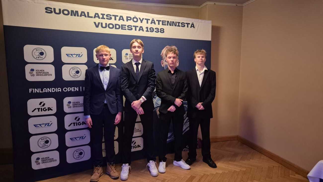Suomen Pöytätennisliitto järjesti toisen peräkkäisen Pingisgaalan. Gaalaillassa palkittiin menestyneitä maamme pöytätennispelaajia ja vaikuttajia. Kuopion Pöytätennisseura sai tälläkin kerralla huomiota kun Katja Kohonen valittiin vuoden valmentajaksi. SPTL:n valintakommentti Katjan valinnasta: "Kuopion junioritoiminnassa aktiivisesti kevääseen asti mukana ollut Katja on tehnyt kesällä ja syksyllä paljon töitä Niko Hämäläisen kanssa. Niko onkin ottanut syksyn aikana valtavan kehitysaskeleen. Katja on autellut myös toisen paljon kehittyneen savolaisen, Timo Natusen valmennuksessa." Kuopion Pöytätennisseura onnittelee ja kiittää Katjaa laadukkaasta työstään Kuopion pöytätenniksen eteen! Vaikka Nikoa hehkutetaan alempana peliesityksistään, onnitellaan myös häntä Pöytätennisrahaston stipendistä! Gaalaviikonlopun yhteydessä pelattiin toki pingistäkin Ruskeasuolla. Gaalakilpailut ja juniorien TOP-kilpailu tarjosi hienoa menestystä jälleen seuramme juniorikärkemme pelaajille. Niko Hämäläinen otti omansa junioripoikien Top-turnauksessa. Nikon vanavedessä Elmeri Räsänen pelasi hienon turnauksen ja sijoittui toiseksi. Kuuden pelaajan kaikki kaikkia-vastaan pelatussa kisassa Niko voitti kaikki ottelunsa, joutuen tiukimmille juuri Elmerin kanssa (3-2). ONNEA POJAT! Akseli Julkunen puolestaan osoitti jälleen että peli kulkee joka paikassa hyvin. Akseli niin 1800- kuin Rating2-luokat. Myös Konsta Leppänen otti palkintosijoituksen Rating2-luokassa häviten Akselille niukasti semin. ONNEA POJAT! Koska junnumme osaavat pelaamisen lisäksi myös kirjoittaa, annetaan jatkossa Nikon "kynän" puhua: "Päivä alkoi molemmilta hyvin ja molemmat pääsivät poolista jatkoon, mutta ikävästi joutuivat kohtaamaan jo semi-finaalissa. Peli oli draamashow ja päätyi Akselin huikeaan cholettamiseen neljännen erän jatkopalloilla, tiukka peli vaikka molemmilta osapuolilta tulikin tuuripisteitä. Jonka jälkeen Akseli voitti keravan Eino Reinan pystyyn 3-0 toisessa ratingluokassa. Päivän pelit jatkuivat elmerin ikävän ja niukan poolijäämisen ja minun jatkoonpääsyn 1. Sijoitettuna MK:poolista. Konsta ja Akseli pelasivat upeasti 1800-luokassa, konsta tippui 5. Erässä 11-9 täydelliseen soripalloon. Akseli jatkoi omaa deputtia ja voitti koko luokan ja itse jäin MK:ssa 8. Joukkoon tiukan ottelun Esa Kanasuota vastaan." Se on heleppoo kun ossoo. |