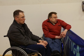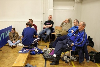 ![]() Yleisössä seurataan tiiviisti pronssiottelun tapahtumia. | ![]() Jani Kokkonen saa ohjeita Jari Kurkiselta. |